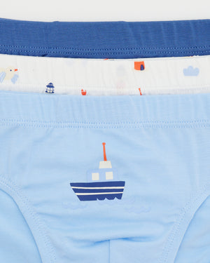 Comfort meets play in these stretchable bamboo spandex briefs designed for little sailors. Featuring nautical motifs and a snug fit, these undies keep your little one cool, comfy, and ready to set sail every day.