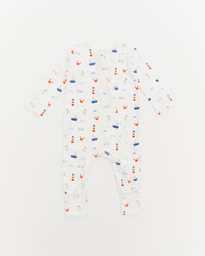 Designed for ultimate comfort, the Seafarer Sleepsuit is perfect for babies who are ready to drift into dreamland. Adorned with charming nautical prints. These sleepsuits ensure your baby sleeps soundly in a breathable and thermoregulating fabric.