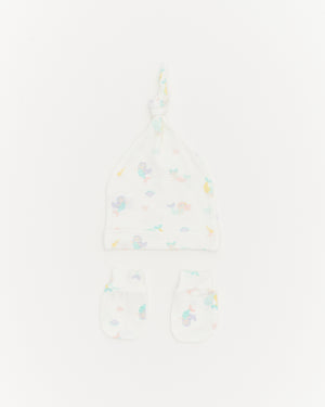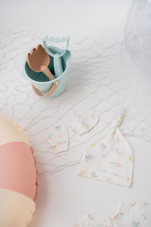Introducing our newest accessory set! Keep your baby cozy and cute with our Mermaid Magic Hat & Mittens set. Designed to protect tiny heads and hands while showcasing whimsical mermaid prints, this set is the perfect finishing touch for any outfit in the collection.