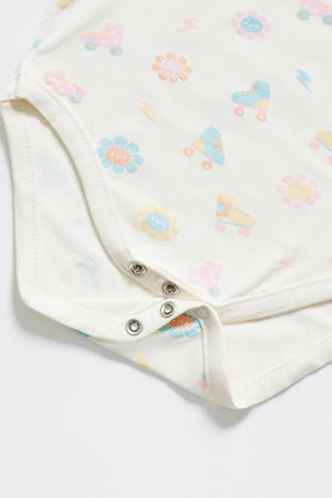 Featuring playful daisy and rollerblade-inspired prints, these bodysuits are made from 95% Bamboo & 5% Spandex for a soft, breathable feel. With stretch fabric and easy snap closures, they’re designed for everyday comfort and fuss-free dressing.