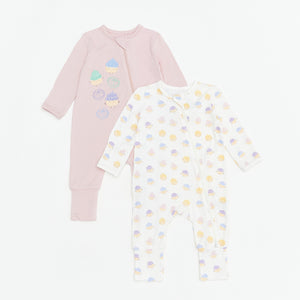 Sweet like the Good old times! Time to delight with our Iced Gems styles introduces a delightful collection featuring fun Iced Gems characters. This product features 2 uniquely designed sleepsuits, each with a two-way zipper system to make changing easy and quick. Our suits are equipped with a fold-over foot sole to keep little feet warm and protected. The 0-6M size also features a fold-over scratch mitten to help protect baby's face during bedtime.