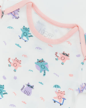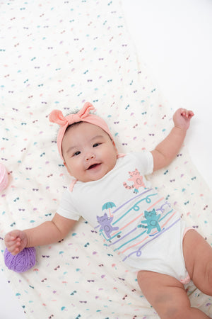Brighten her wardrobe with our Sunny Whisker bodysuits, specially designed for baby girls. Featuring all-over prints of playful kittens enjoying sunny outdoor adventures. Made from our signature bamboo-spandex blend, they are ultra-soft, breathable, and thermoregulating. Snap-button closures make changes quick and easy, so she’s comfy and stylish all day.
