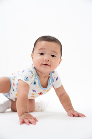 Bring a playful touch to everyday wear with our Monster Mischief bodysuits. Featuring cheeky monster characters in bold, colorful prints, these bodysuits are crafted from an eco-friendly blend of 95% natural bamboo and 5% spandex. Soft, breathable, and thermoregulating, they keep your little one comfy through all their daily adventures. Designed with easy snap buttons for fuss-free dressing and diaper changes.