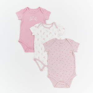 Our new essential bodysuit pack which features 3 unique designs each with envelope neck and easy leg snaps for quick and easy changing. Our breathable and thermoregulating babywear uses a blend of 95% Natural Bamboo and 5% Spandex making it super soft and easy to wear.