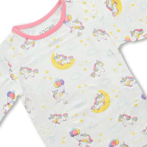 Introducing our magical unicorn-themed pyjama pack, perfect for your little dreamer! Each pack includes 2 sets of pyjamas, featuring unique unicorn designs that will spark your child's imagination and make bedtime a fantastical adventure. Made with our super soft and stretchable bamboo material, these pyjamas are as cozy as a unicorn's hug!