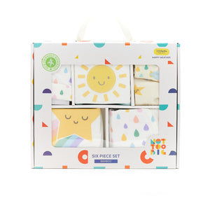 Not Too Big’s 6 Essentials Gift Set supports your friends and family by keeping their little one cozy and stylish from head to toe. This gift set includes Not Too Big’s iconic bamboo babywear made with a special blend of 95% Natural Bamboo and 5% Spandex, making it ultra-soft and easy to wear. The breathable and thermoregulating fabric ensures that your baby stays comfortable all day long. Plus, it’s hypoallergenic, anti-fungal, and anti-bacterial - so you can trust that your baby will stay magically clean and comfortable. We’ve also carefully chosen eco-friendly materials that are certified OEKO-TEX® Standard 100, so you can rest easy knowing that your baby is wearing safe and healthy clothing. The set includes a sleepsuit, bodysuit, hat, bib, and even two pairs of socks - everything a baby needs for a cozy and stylish start to life. So why wait? Give your family and friends the gift of comfort and style with the NotTooBig 6 Essentials Gift Set today!