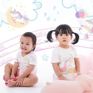 Get ready to gallop into magical dreams with our unicorn-themed shortie set pack! Your little one will be prancing with delight in these enchanting and ultra-comfy shortie sets. Each pack includes 2 sets of our uniquely designed unicorn-themed shortie sets, made with our super soft and stretchable bamboo material.
