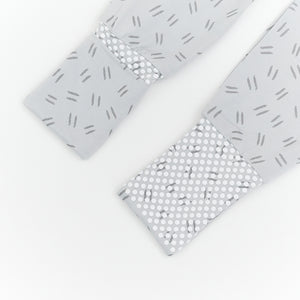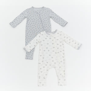Our essential sleepsuits pack, which features 2 uniquely designed sleepsuits, each with atwo-way zipper system to make changing easy and quick. Our suits are equipped with a  fold over foot sole to keep little feet warm and protected. Our 0-6M size also features a  fold over scratch mitten to help protect baby's face during bedtime.