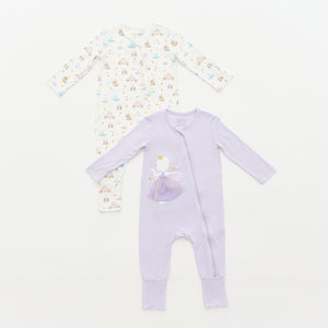 Turn bedtime into a fairy-tale with our Princess sleepsuits! Adorned with castles, carriages, and glass slippers in soft lavender and pastel hues, these sleepsuits make every night magical.