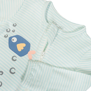 Get your little one ready for bed with our sleepsuit pack, which features 2 uniquely designed sleepsuits, each with a two-way zipper system to make changing easy and quick. Our suits are equipped with a fold-over foot sole to keep little feet warm and protected. Our 0-6M size also features a fold-over scratch mitten to help protect baby's face during bedtime. Our super silky eco-friendly blend of 95% bamboo and 5% Spandex ensures our suits are breathable and thermoregulating whilst remaining super soft and easy to wear. It is also OEKO-TEX Standard 100 certified, allowing your child to roam and conquer their world safely and comfortably.