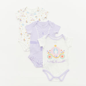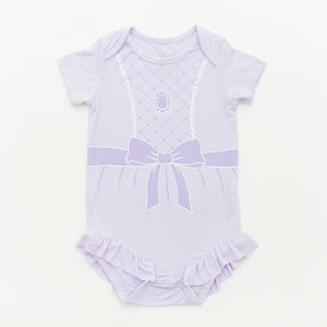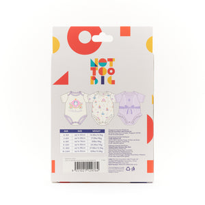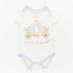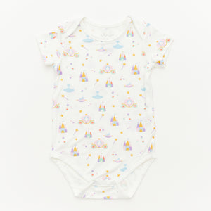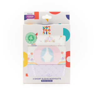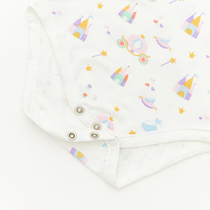 Step into a fairy-tale with our Princess collection! Each bodysuit features magical elements like castles, carriages, and glass slippers in soft lavender and pastel hues.