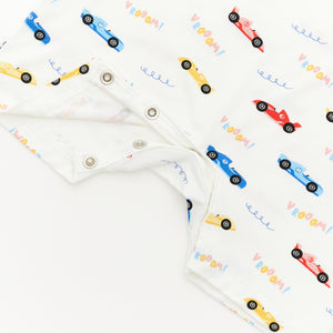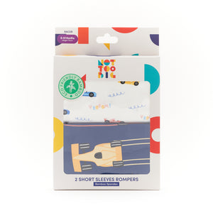 Hit the track with our Tiny Racer collection and make changing time a breeze with our 2-piece rompers pack! Each romper features easy leg snaps for quick and hassle-free changes, designed to keep up with your little racer's fast-paced life.