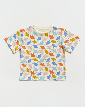 Featuring cheerful bird prints in playful tones, this oversized tee is designed for relaxed comfort and effortless styling during everyday adventures.