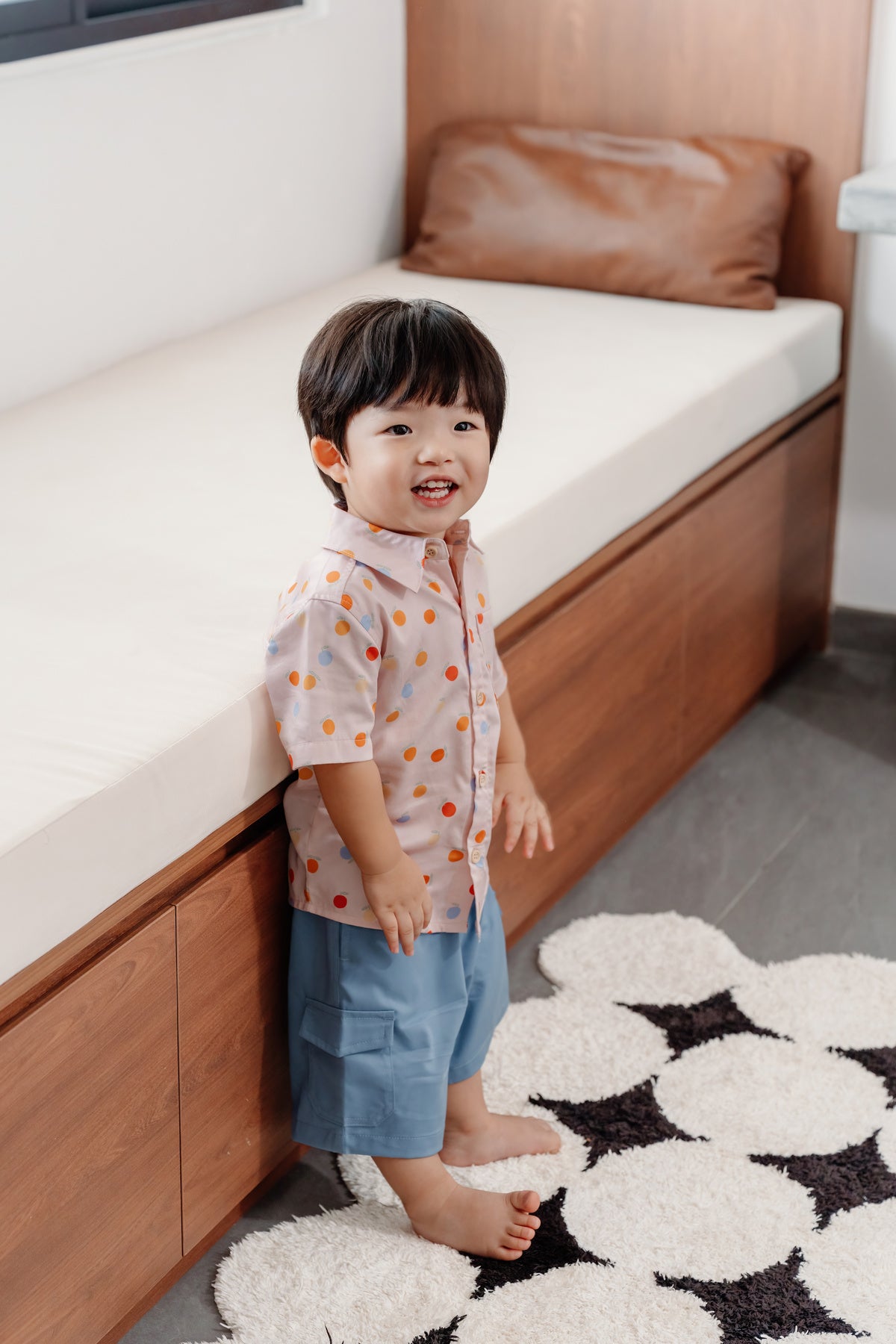 Inspired by the tradition of gifting tangerines, the Citrus Cheer Shirt features colourful oranges symbolising luck and good fortune. Lightweight and breathable, it’s an easy festive staple made from a soft bamboo-cotton blend.