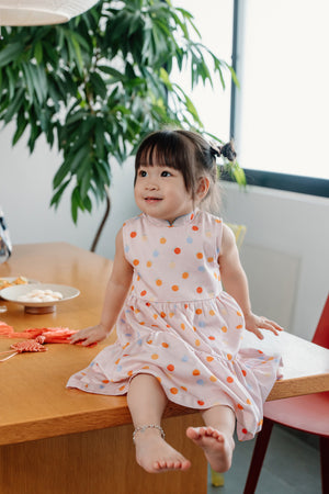 Bright and cheerful tangerines take centre stage in the Citrus Cheer Dress. Soft, breathable, and easy to wear, this bamboo-cotton piece keeps little ones comfy while adding joyful colour to their Chinese New Year wardrobe.
